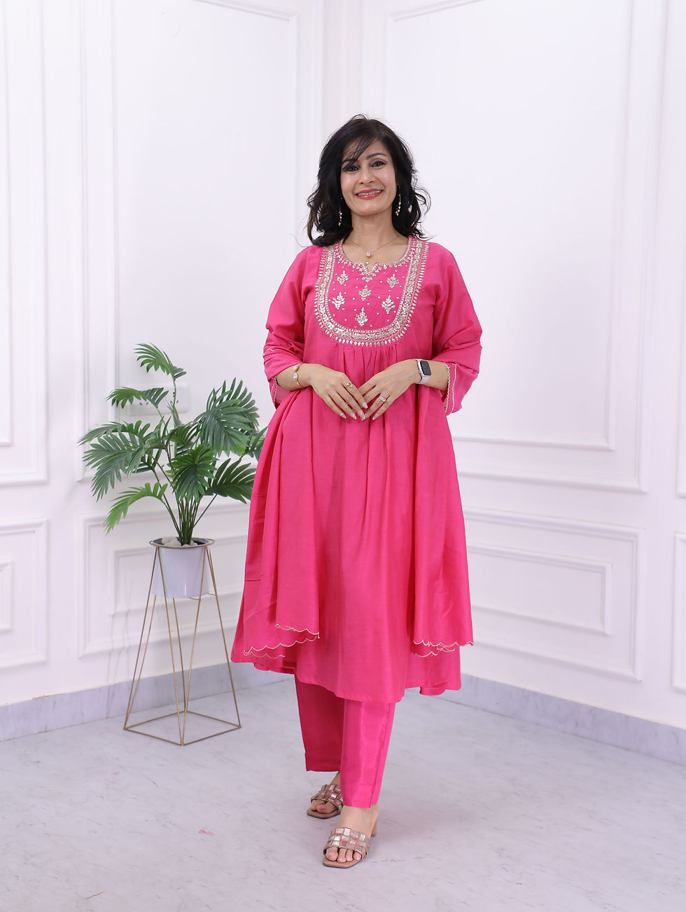 Crafted in luxurious crushed tissue, this kaftan features a heavily hand-worked dabka yoke, beautifully enhanced with long and short tassel detailing. The sleeves carry delicate embellishments, adding subtle charm, while the lining ensures comfort. A striking choice for festive occasions and celebrations. Fabric: Crushed Tissue with lining Details: Hand dabka embroidery on yoke | Tassel accents | Sleeve highlights Style: Festive, Regal, Statement Kaftan